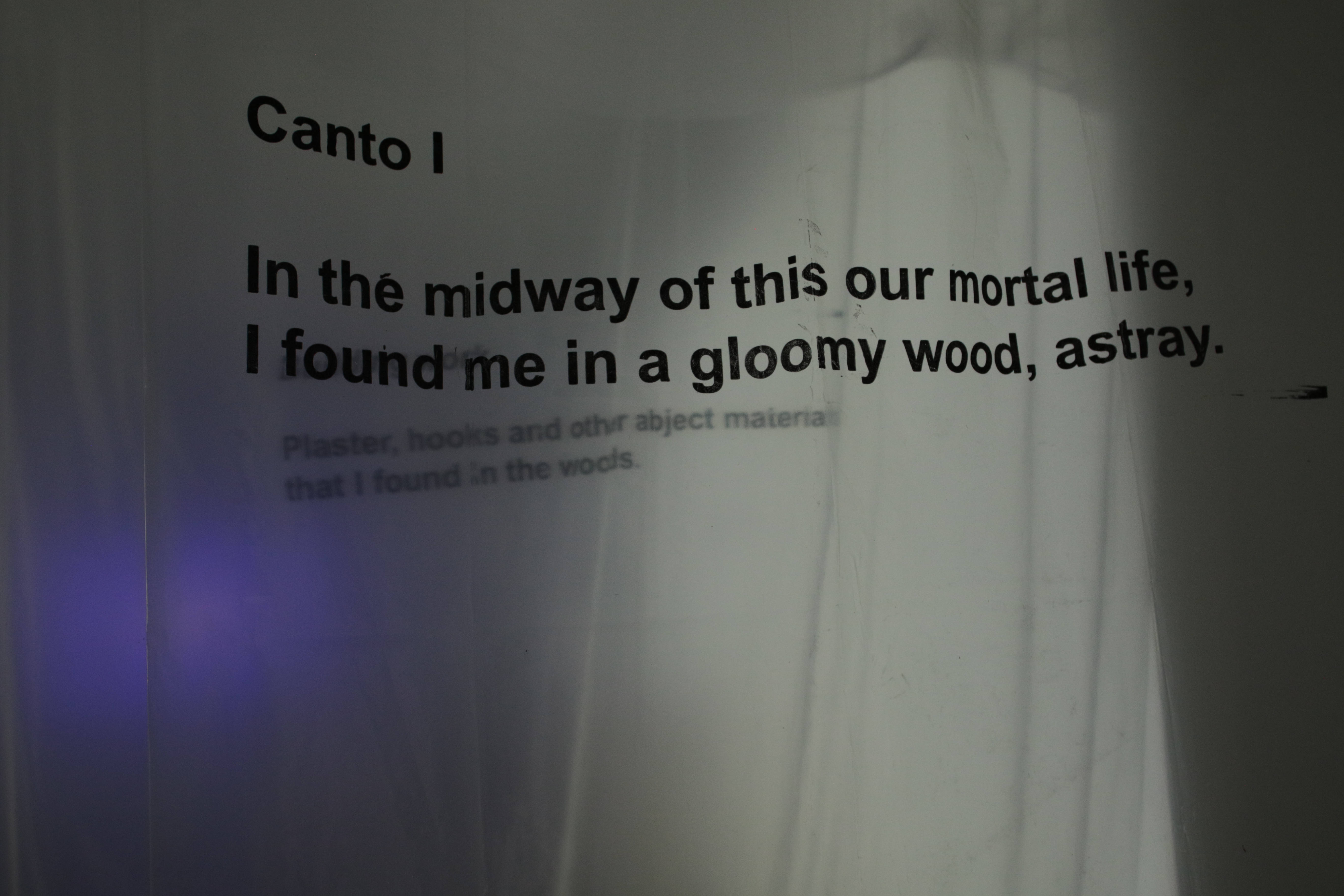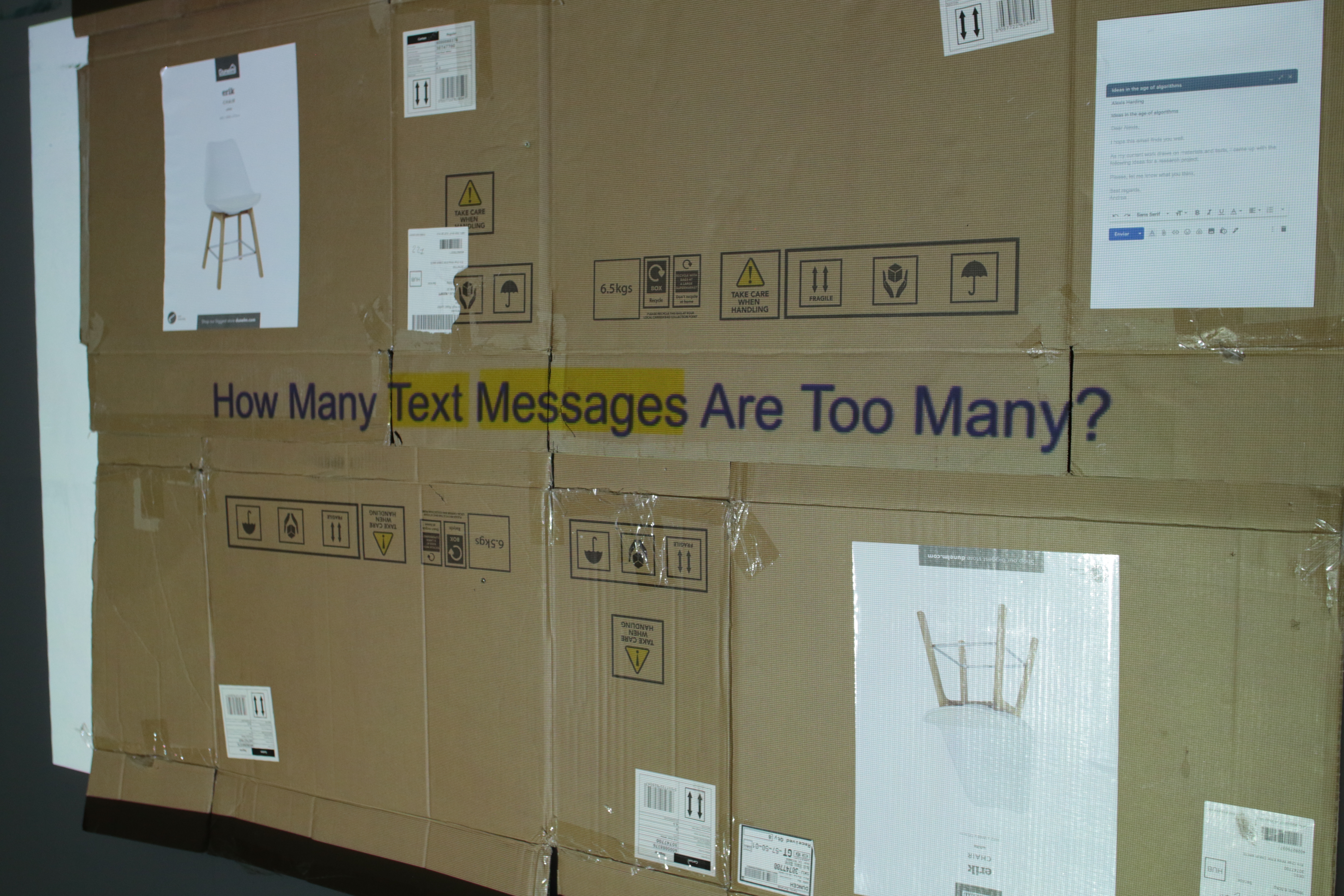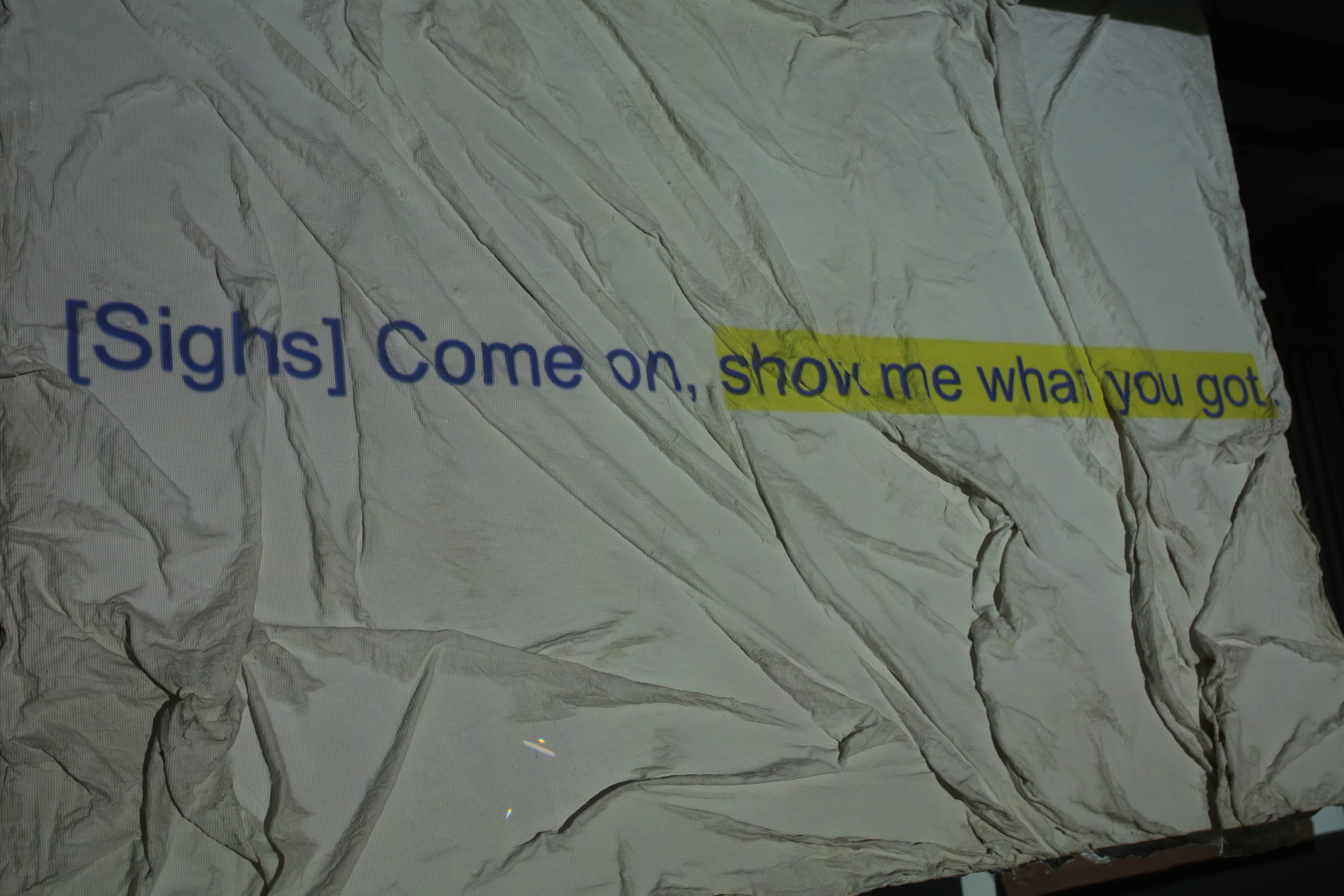 Video projections into different materials & silk screens printed onto cardboard, plaster and plastic bags.